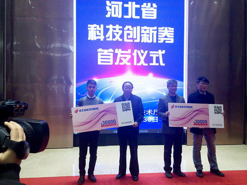 2016年12月30日,河北省科技創(chuàng)新券首發(fā)儀式暨創(chuàng)新服務(wù)提供機(jī)構(gòu)授牌儀式在石家莊舉行。省科技廳黨組副書記、副廳長郭玉明出席活動(dòng)并講話,并對(duì)科技創(chuàng)新券的使用提出了具體要求。來自省內(nèi)的30家創(chuàng)新創(chuàng)業(yè)團(tuán)隊(duì)代表參會(huì),石家莊高新區(qū)科技局代表審核發(fā)放機(jī)構(gòu)介紹個(gè)創(chuàng)新券使用說明及首批申領(lǐng)情況。郭玉明副廳長為10家創(chuàng)新服務(wù)提供機(jī)構(gòu)授牌,并為10家創(chuàng)新券申領(lǐng)單位代表發(fā)券。
