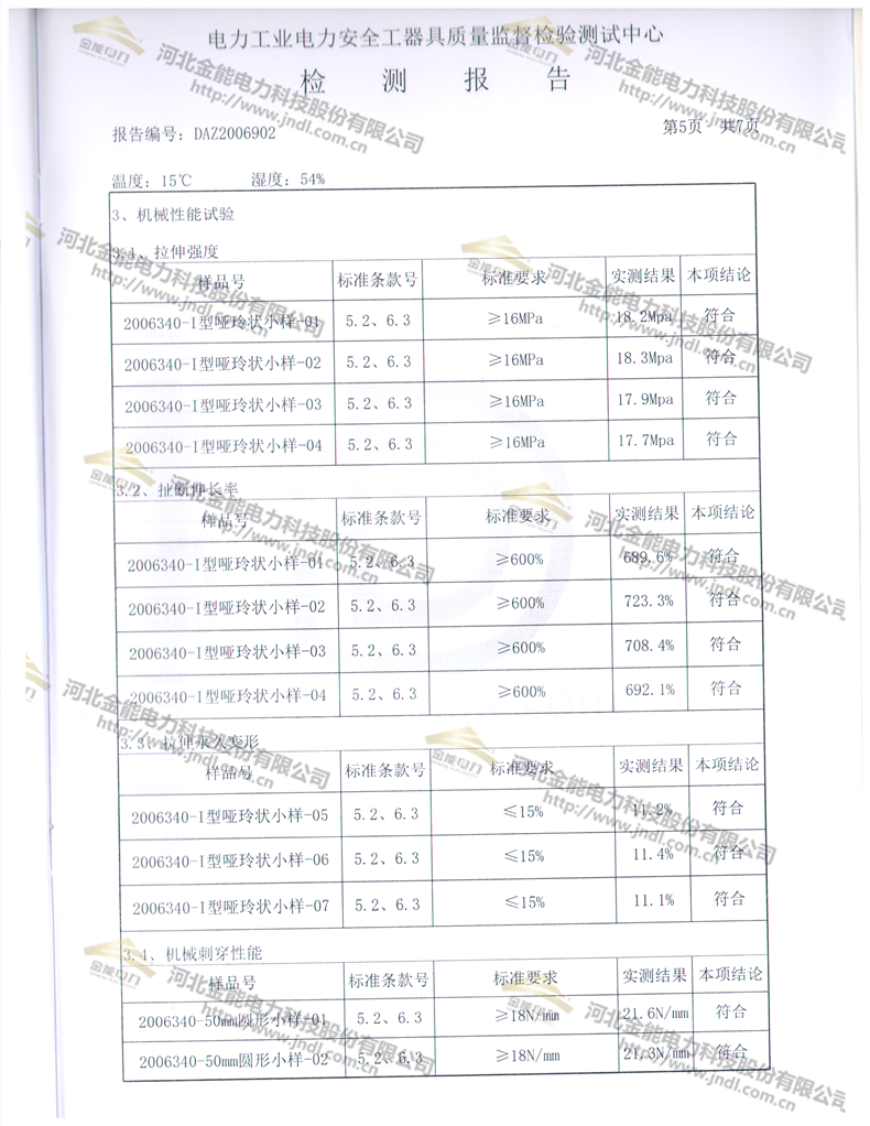 金能電力35kv絕緣手套檢測報告